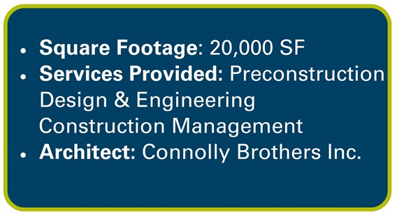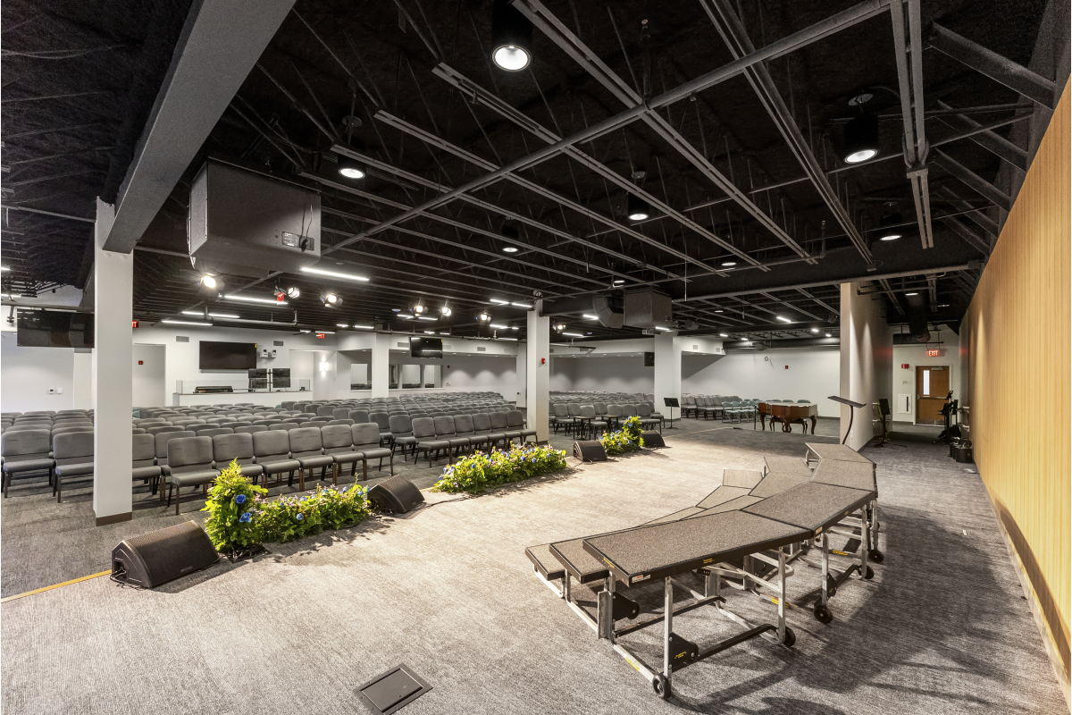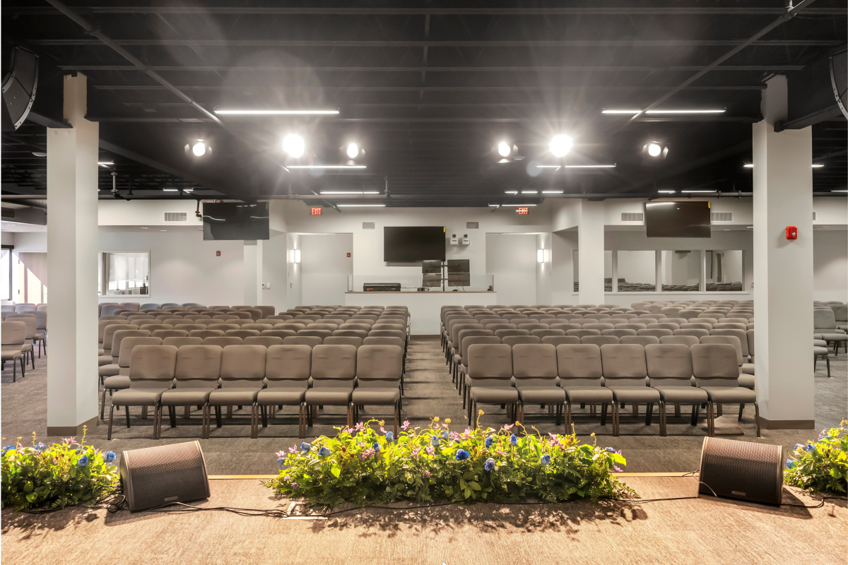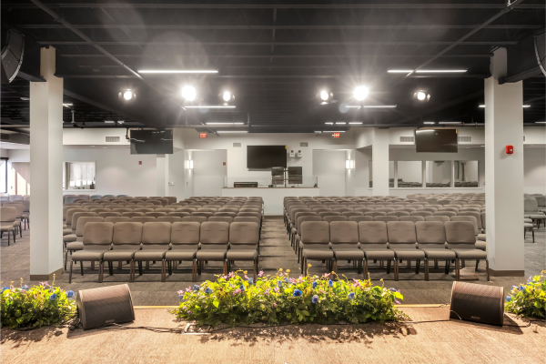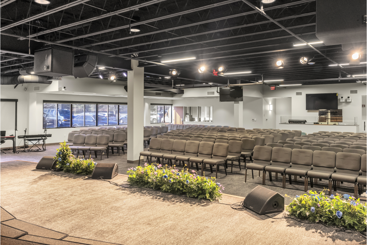The scope of this project included demolition of existing first-floor office and light manufacturing space to accommodate construction of three sanctuaries, gathering and fellowship areas, a serving kitchen, and a new accessible entrance ramp and deck located at the rear of the building. The Connolly team worked closely with the church's building committee to expedite delivery of long lead items.