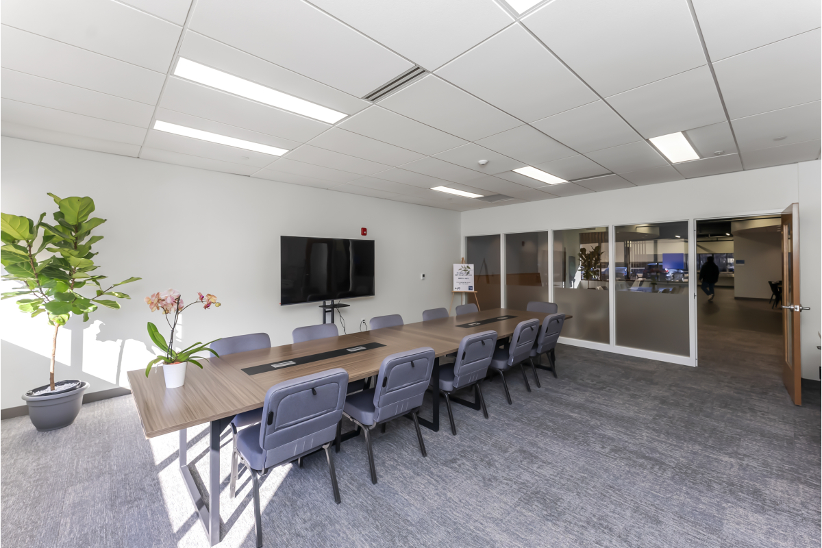 The project involved a change in use from office/light manufacturing to assembly space. This required the addition of two new side entrances and an accessible rear entrance ramp to meet building code provisions for occupancy, life safety, and accessibility.