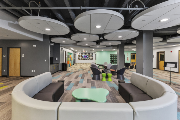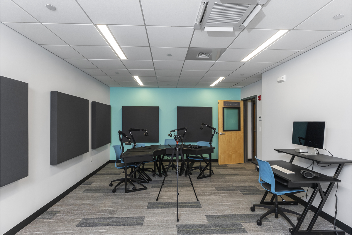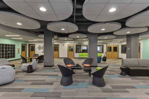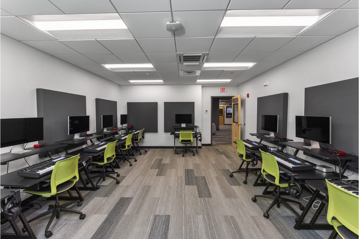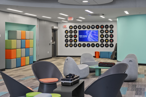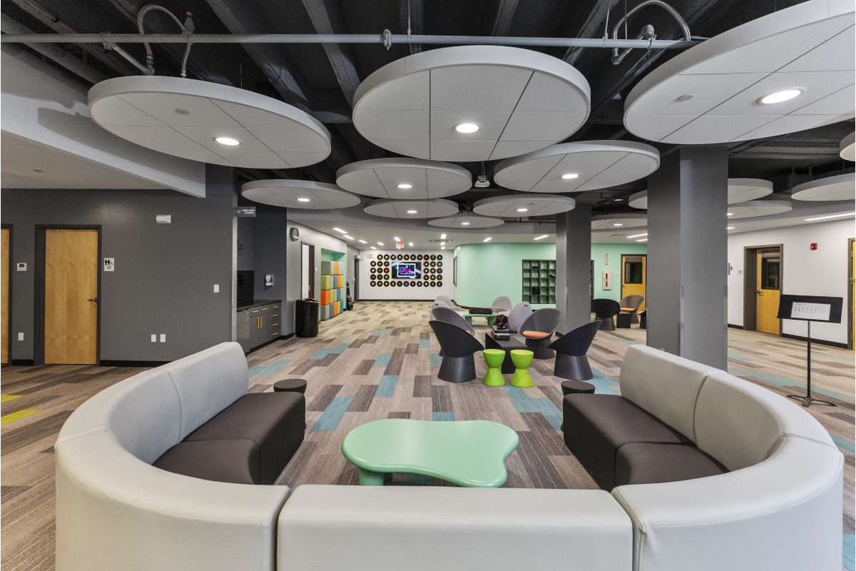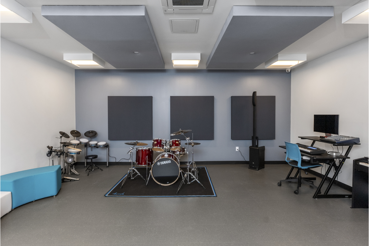The scope of this project involved demolition of an existing locker room to accommodate construction of a new, state-of-the-art music and performing arts center. This space provides the Demakes Family YMCA with a modern performance theater, a radio station/podcasting studio, recording studios, individual and group practice rooms, a training room, library, and tech room.